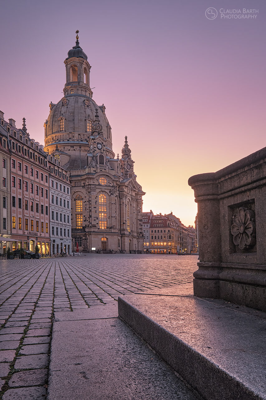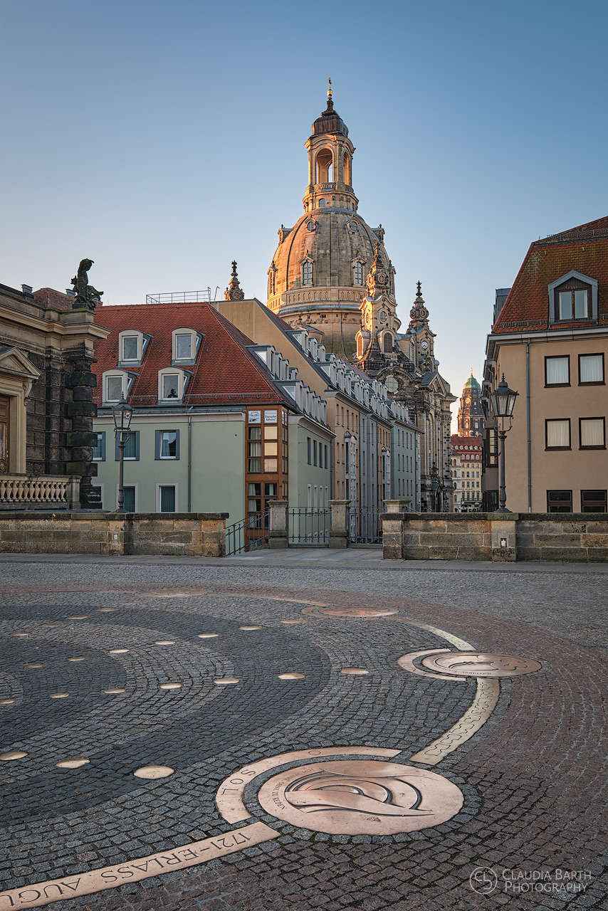 Frauenkirche im Licht der aufgehenden Sonne